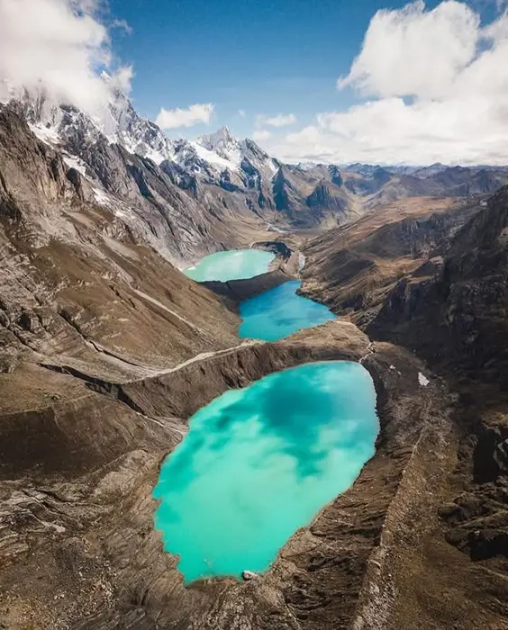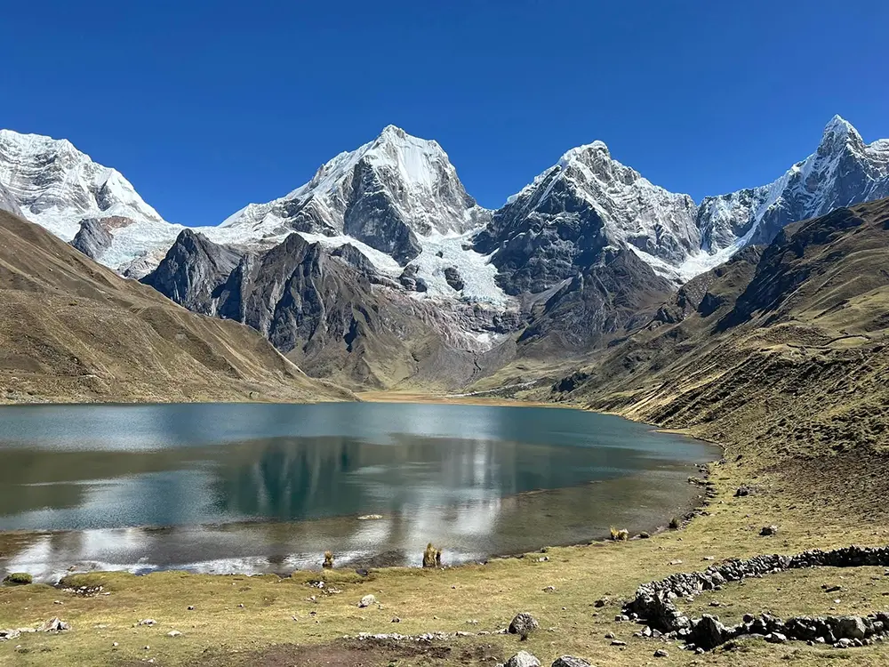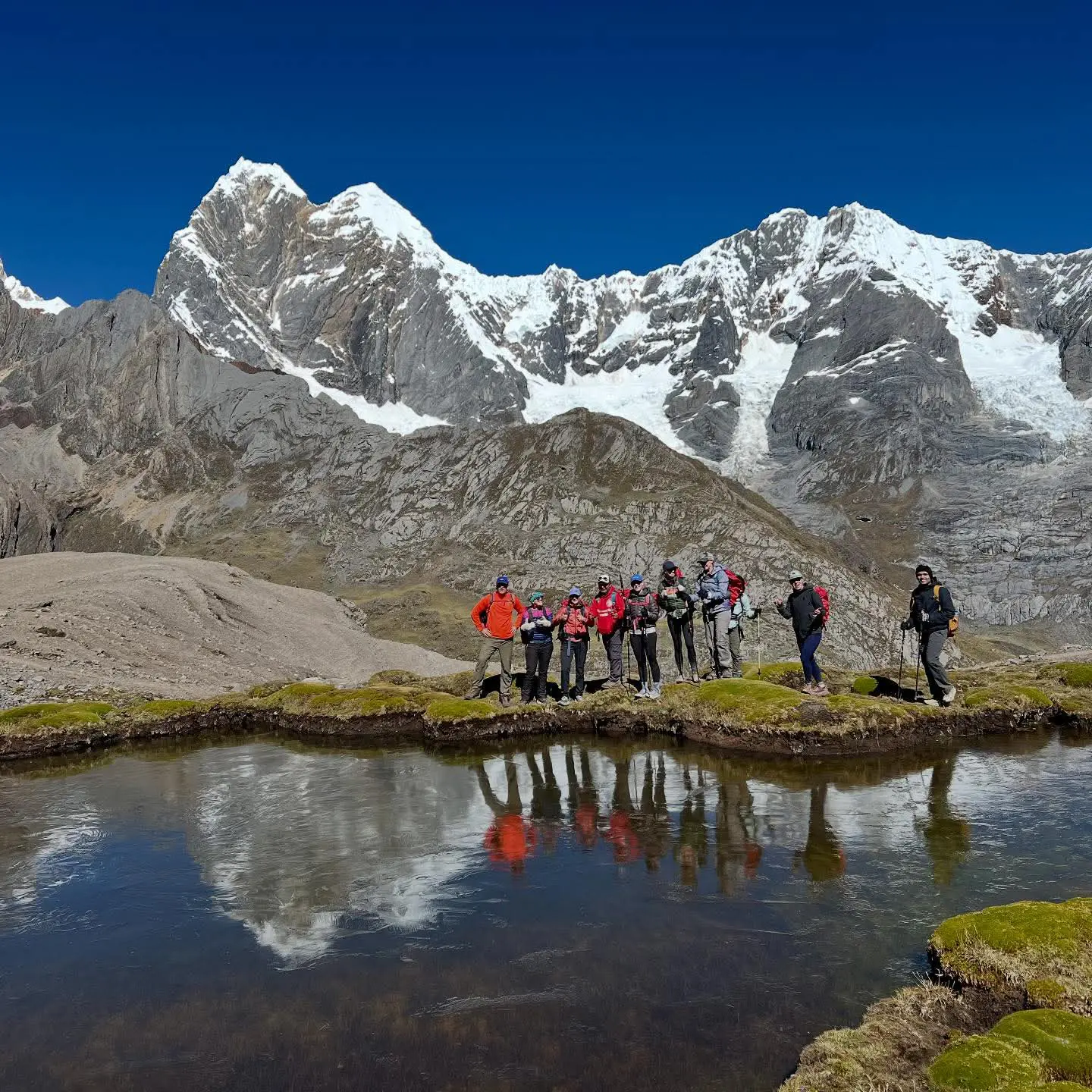 The journey begins with a scenic transfer from Huaraz to Llamac, followed by moderate hikes through valleys and along glacial trails to various base camps and lakes. Under the guidance of experienced mountain guides, participants traverse alpine trails safely, crossing rivers, moraines, and high passes while enjoying the spectacular geography of the region.