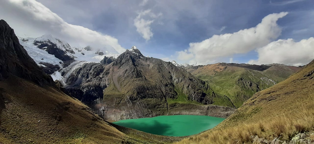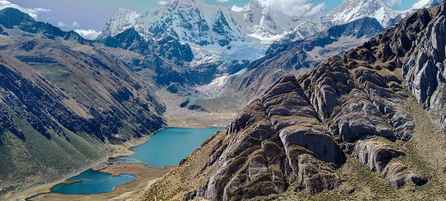 This compact route takes you through some of the most spectacular sections of the range, with incredible views of Yerupajá (6,634 m), Siula Grande (6,344 m), and Jirishanca (6,094 m) — the snow-covered giants that define the Huayhuash skyline. You’ll hike past crystal-clear lagoons like Jahuacocha and Solteracocha, surrounded by dramatic peaks and pristine Andean landscapes.