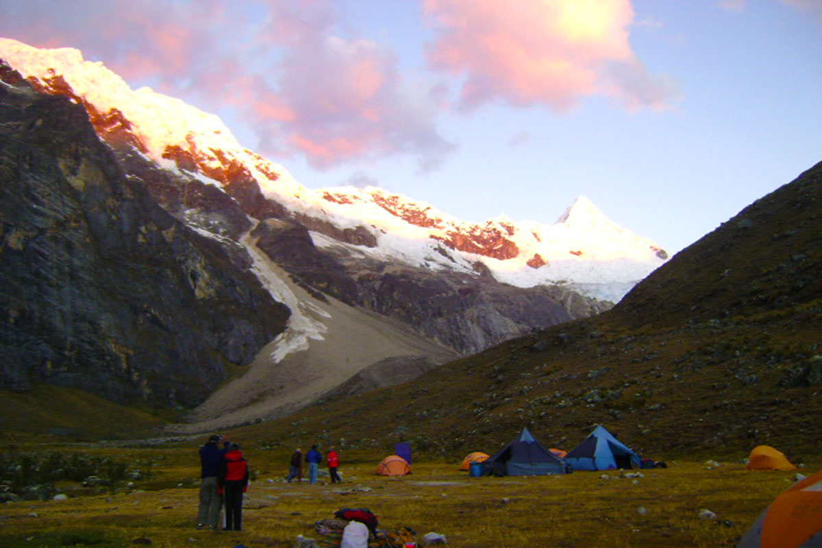Descendemos al campamento debajo del majestuoso Alpamayo en el