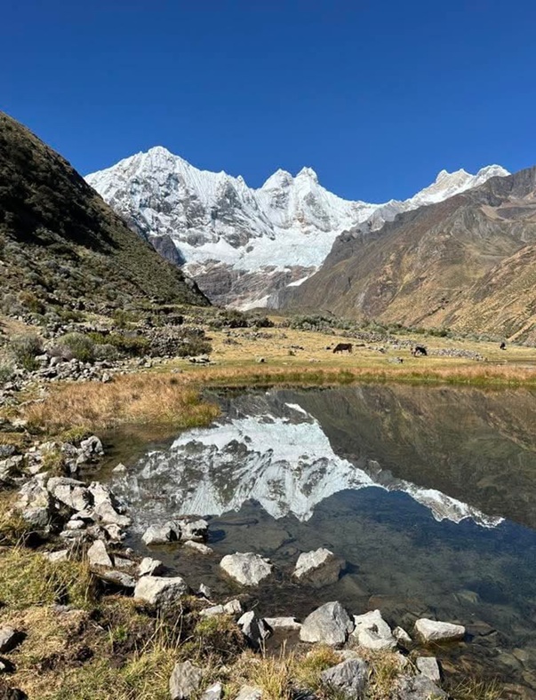 We can hike for a couple of hours to the Yaucha Pass (4800 m) to see the western side of the Huayhuash mountain range, or ascend through the Quebrada Rasac valley (also 2 hours) to the Puka Puka viewpoint. There, we have a great view of Jahuacocha and Soltera Cocha lagoons.