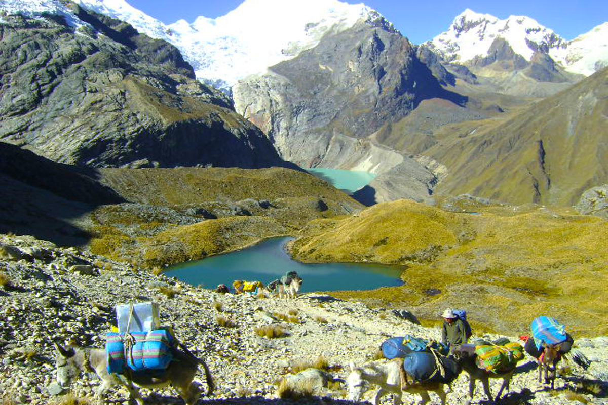 A hora indicada recojo en el hotel y traslado al pueblo de Cashapampa 3900m, a donde llegamos luego de 3 horas en coche, lugar donde nos espera el Arriero y las acémilas. Luego iniciamos la caminata por la quebrada Santa Cruz a orillas del río del mismo nombre hasta el lugar denominado Llamacorral 3900m, lugar donde llegamos luego de una caminata de 5 horas y donde acampamos.